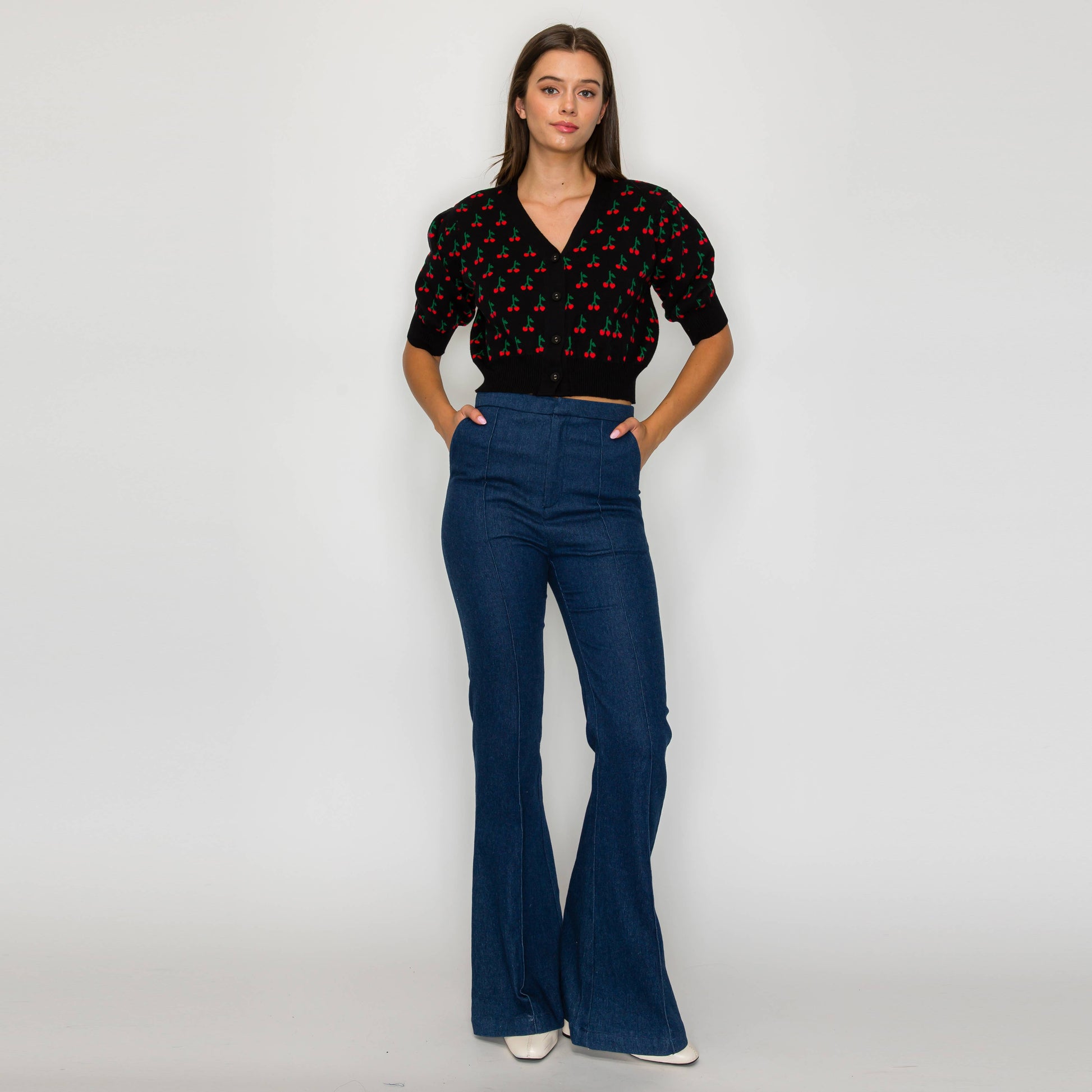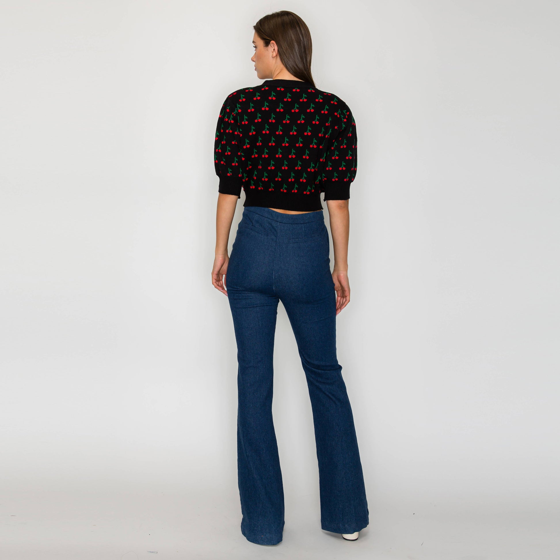 Cute as Cherry black Crop Sweater - LWSW1209: M